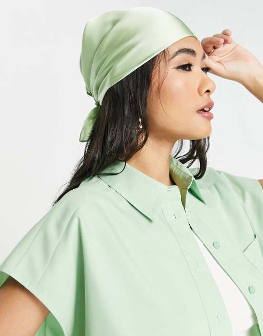 ASOS DESIGN – Kopftuch aus Polysatin in Salbeigrün - MGREEN