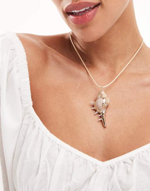 ASOS DESIGN – Kordel-Halskette in Cremeweiß mit unechtem Muschelanhänger