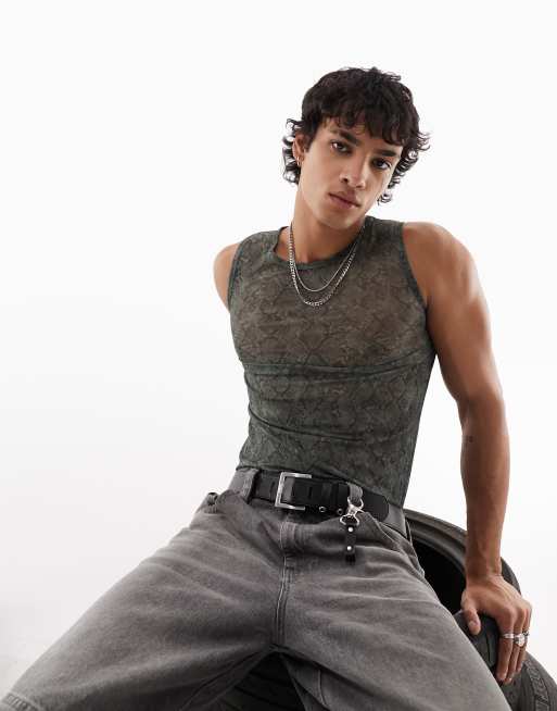 ASOS DESIGN – Körperbetonter Netzstoff-Body mit Schlangenmuster