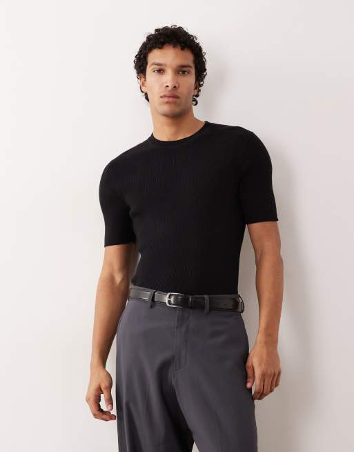 ASOS DESIGN – Körperbetontes Basic-T-Shirt aus Baumwollstrick in Schwarz mit Rundhalsausschnitt