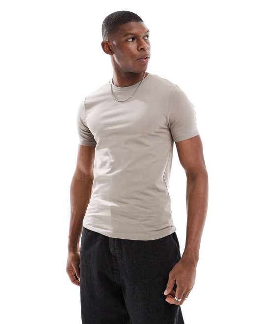 ASOS DESIGN – Körperbetontes Basic-T-Shirt in Steinbeige