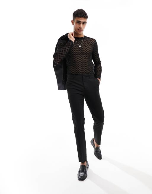 ASOS DESIGN – Körperbetontes, langärmliges Netzstoff-T-Shirt mit Wirbel-Ausbrennermuster