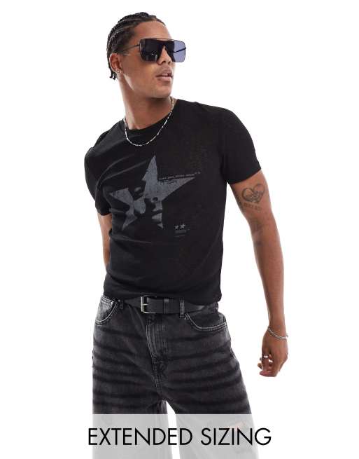 ASOS DESIGN – Körperbetontes T-Shirt aus Netzstoff in Schwarz mit Aufdruck