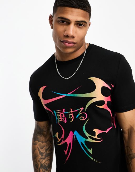 ASOS DESIGN – Körperbetontes T-Shirt in Schwarz mit 90er-Brustprint