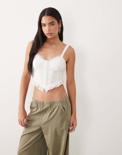 ASOS DESIGN – Korsett-Oberteil aus weißer Spitze mit Rüschensaum