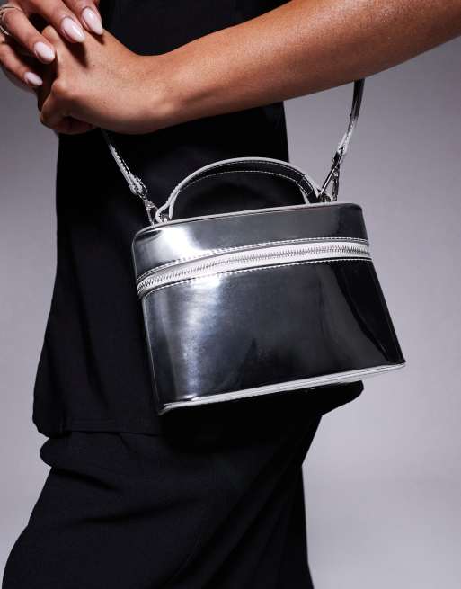 ASOS DESIGN – Kosmetiktasche in Hochglanz-Silber mit abnehmbarem Umhängeriemen