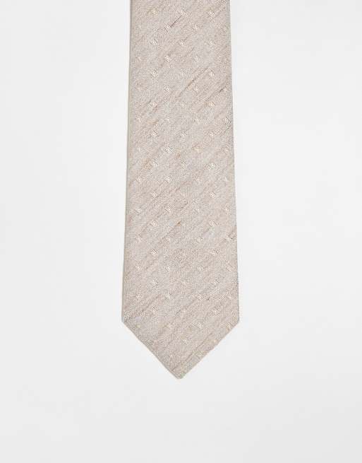 ASOS DESIGN – Krawatte in beige mit Leinen und kleinem Strukturmuster