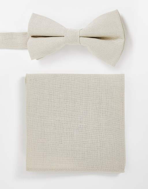 ASOS DESIGN – Krawatte und Einstecktuch aus Leinen in Steingrau