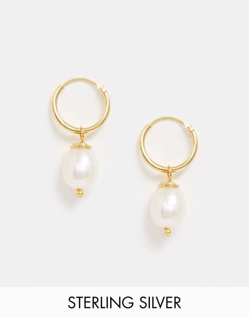 ASOS DESIGN – Kreolen aus vergoldetem Sterlingsilber mit Perlenanhänger