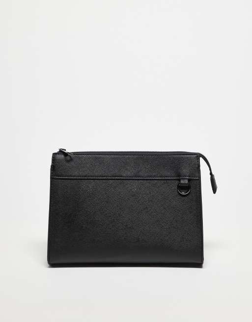 ASOS DESIGN – Kulturbeutel aus Saffiano-Kunstleder in Schwarz