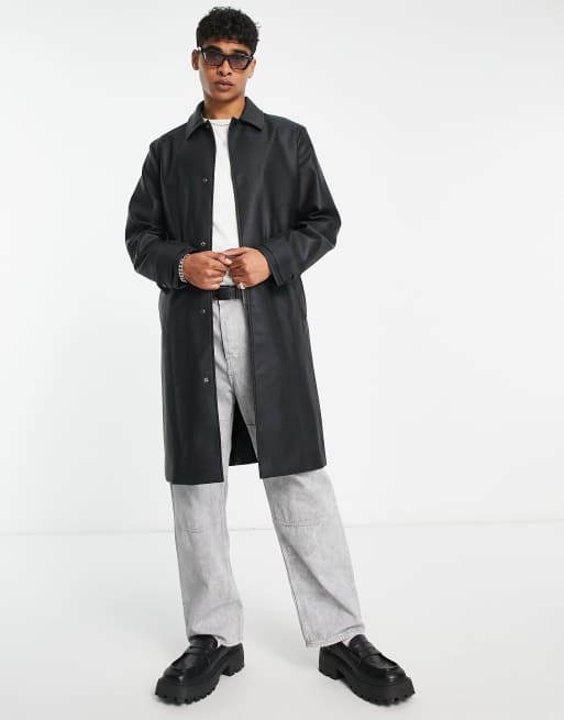 ASOS DESIGN – Kunstleder-Trenchcoat in Schwarz mit Gürtel