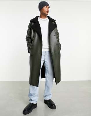 ASOS DESIGN – Kunstleder-Trenchcoat mit Teddyfutter in Khaki