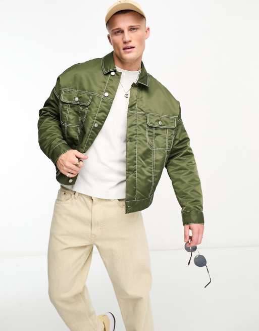ASOS DESIGN – Kurz geschnittene Oversize-Jacke im Westernstil mit farblich abgesetzten Ziernähten