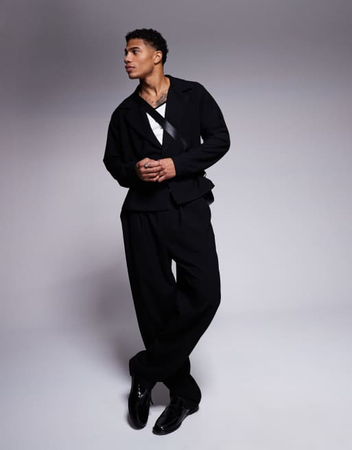 ASOS DESIGN – Kurz geschnittene Wickel-Hemdbluse mit lockerem Schnitt und weite Hose in Schwarz