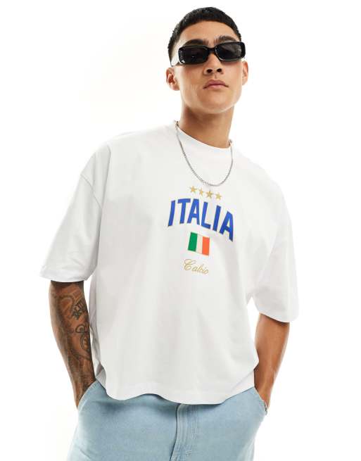 ASOS DESIGN – Kurz geschnittenes Oversize-T-Shirt in Weiß mit „Italia“-Print auf der Brust