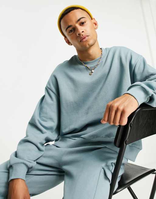 ASOS DESIGN – Kurz geschnittenes Sweatshirt in Blau mit Utility-Tasche, Kombiteil
