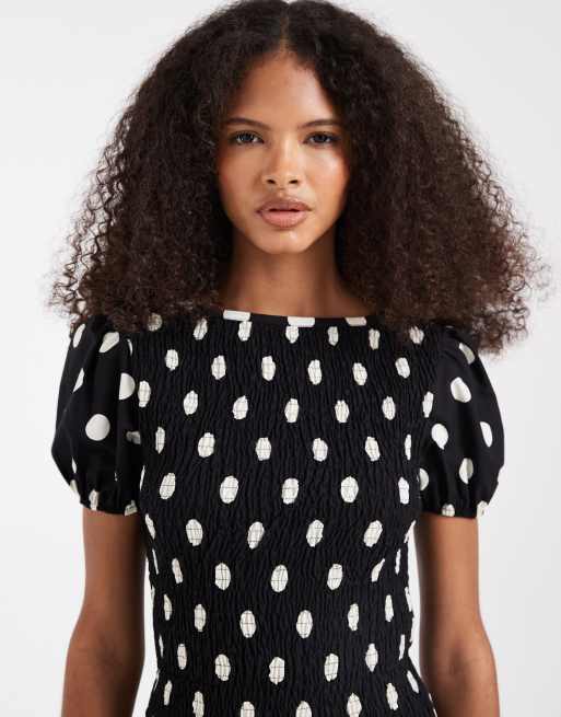 ASOS DESIGN – Kurzärmliges, gesmoktes Oberteil in Schwarz-Weiß mit Polka Dots, Kombiteil
