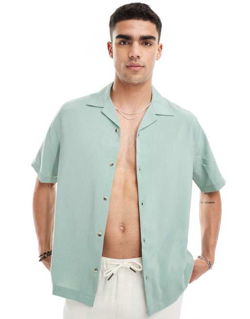 ASOS DESIGN – Kurzärmliges Hemd in strukturiertem Salbeigrün mit lockerem Schnitt und Reverskragen