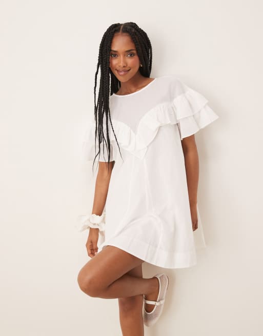 ASOS DESIGN – Kurzärmliges Kleid in Weiß mit Rüschen