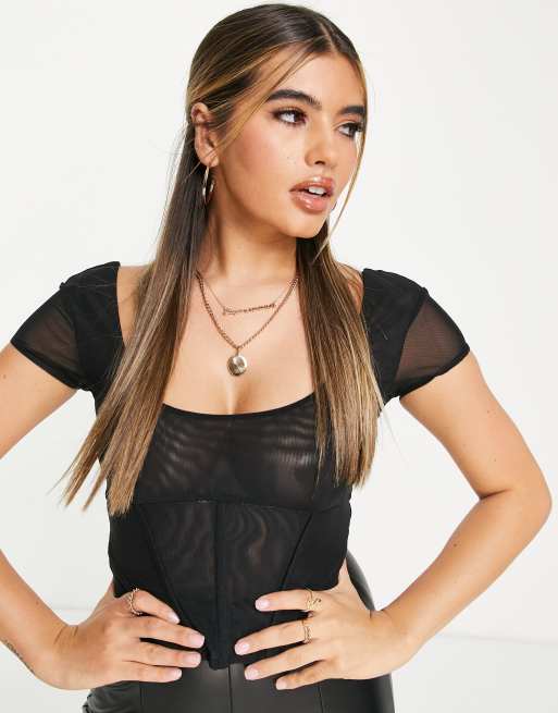 ASOS DESIGN – Kurzärmliges Korsett in Schwarz mit U-Boot-Ausschnitt