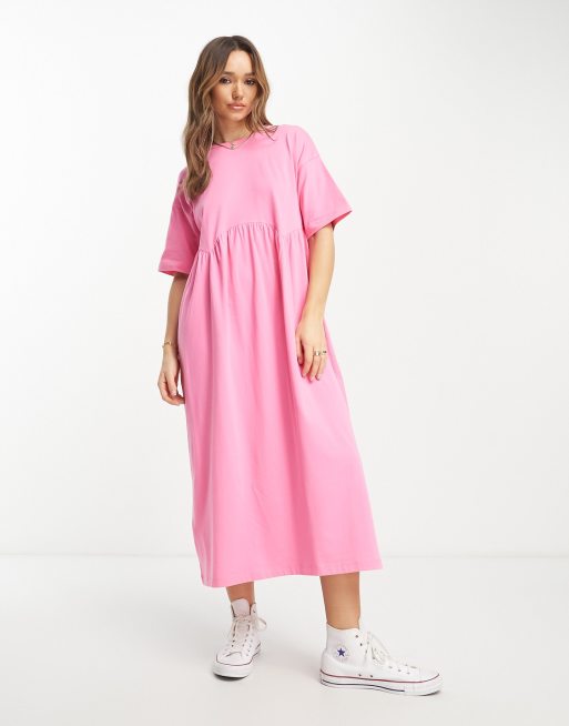 ASOS DESIGN – Kurzärmliges Midi-Hängerkleid in Pink mit Ziernaht