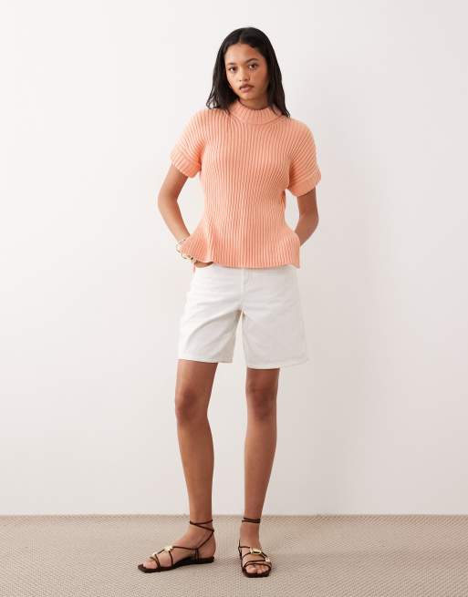 ASOS DESIGN – Kurzärmliges Strick-Tanktop in Pfirsich mit gepolstertem Ausschnitt und Seitenschlitz