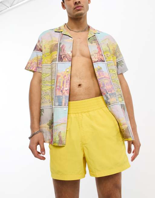 ASOS DESIGN – Kurze Badeshorts in Gelb mit breitem Bund