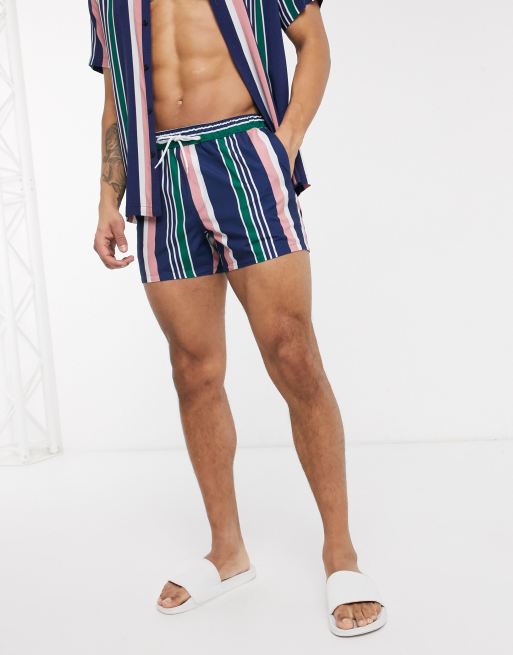 ASOS DESIGN – Kurze Badeshorts mit bunten Streifen, Kombiteil