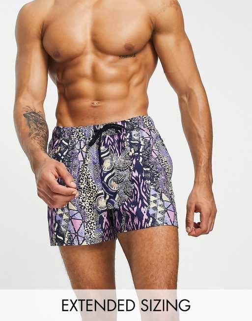 ASOS DESIGN – Kurze Badeshorts mit Retro-Muster