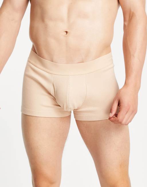 ASOS DESIGN – Kurze, gerippte Unterhose in Beige