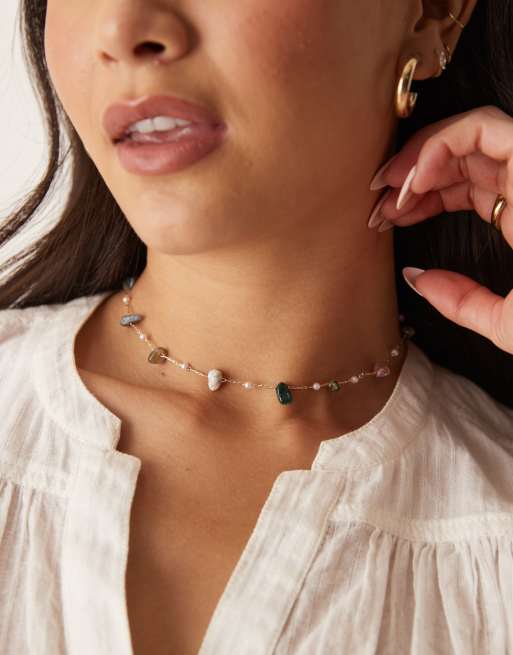 ASOS DESIGN – Kurze Halskette in Goldoptik mit gemischten Halbedelsteinsplittern