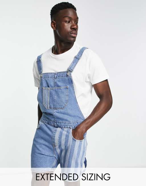 ASOS DESIGN – Kurze Jeans-Latzhose mit Patchwork-Streifendesign