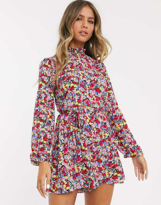 ASOS DESIGN – Kurzer, geblümter Jumpsuit mit Taillenschnürung