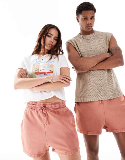 ASOS DESIGN – Kürzere, schmal geschnittene Unisex-Shorts in verwaschenem Rosa