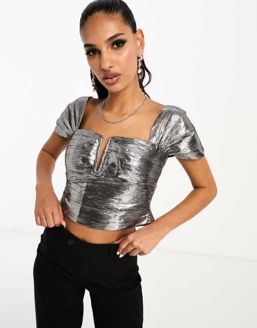 ASOS DESIGN – Kurzes Metallic-Oberteil in Silber