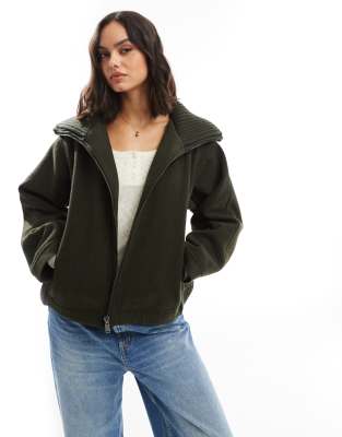 ASOS DESIGN – Kurzmantel in Khaki mit Strickkragen