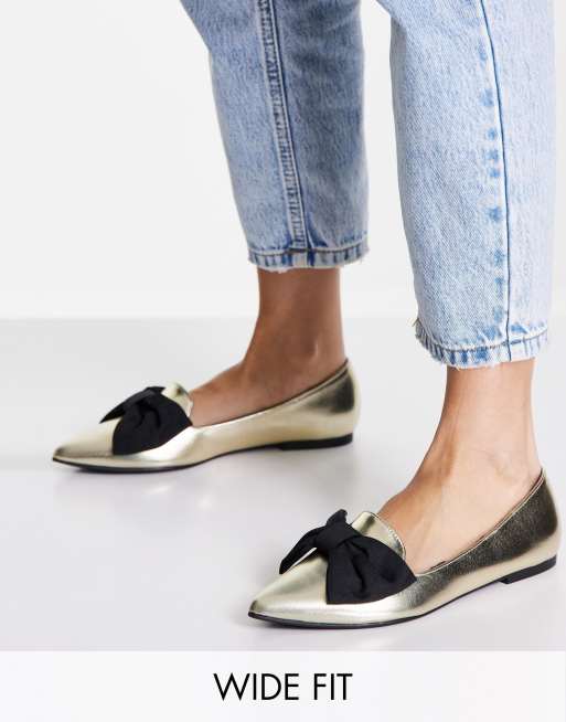 ASOS DESIGN – Lake – Spitze Ballerinas mit Schleife in Gold-Metallic, weite Passform
