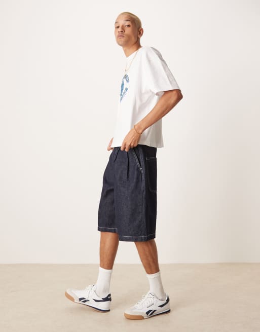 ASOS DESIGN – Lang geschnittene Jeans-Jorts in Raw-Waschung mit Doppelfalten