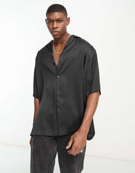 ASOS DESIGN – Lang geschnittenes Oversize-Satinhemd in Schwarz