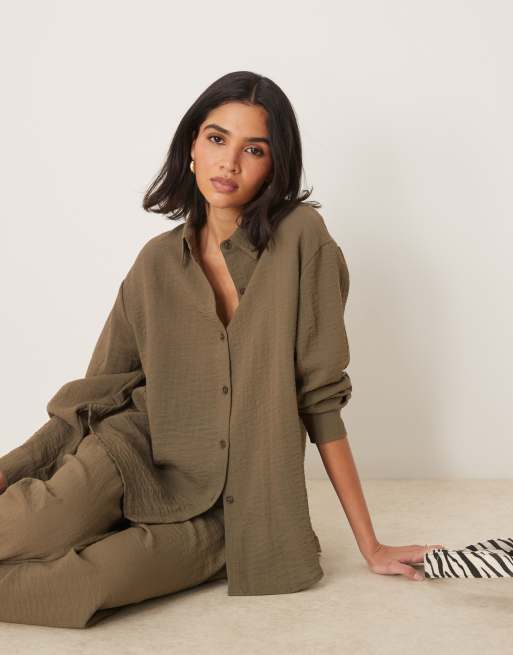 ASOS DESIGN – Langärmeliges Hemd in Khaki mit offenem Rückenteil, Kombiteil