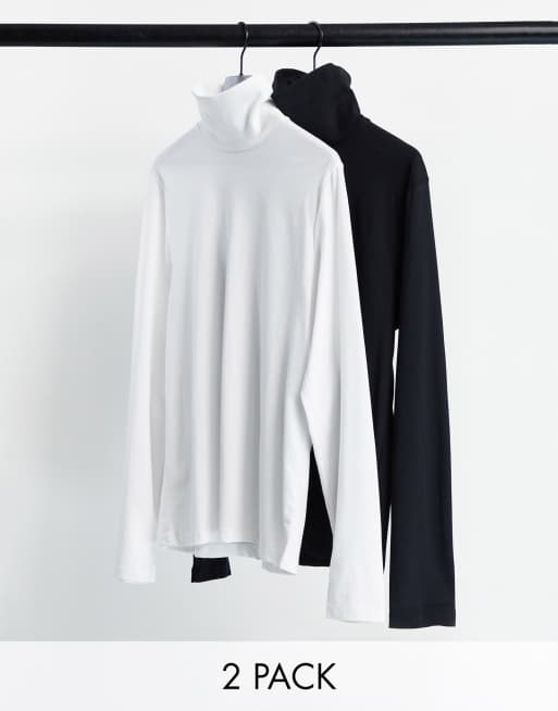 ASOS DESIGN – Langärmlige Rollkragen-Oberteile aus Jersey im 2er-Pack, Schwarz/Weiß