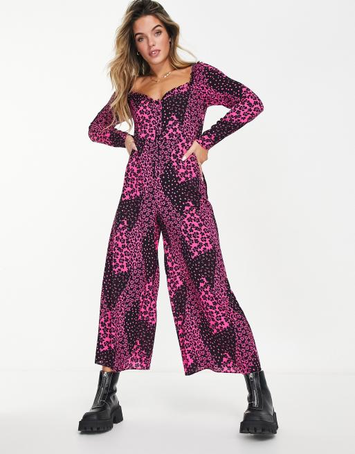ASOS DESIGN – Langärmliger Freizeit-Jumpsuit im Milchmädchen-Stil aus Blasenkrepp in Rosamischung