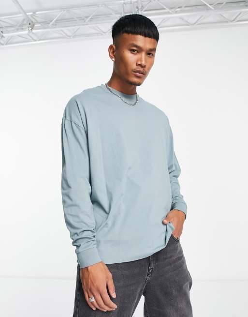 ASOS DESIGN – Langärmliges Basic-Shirt in Blau mit Oversize-Schnitt
