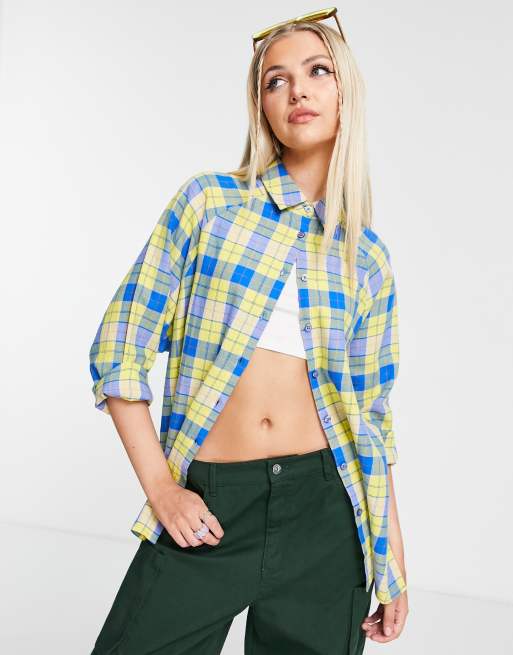 ASOS DESIGN – Langärmliges Boyfriend-Hemd in Hellgelb und Blau kariert