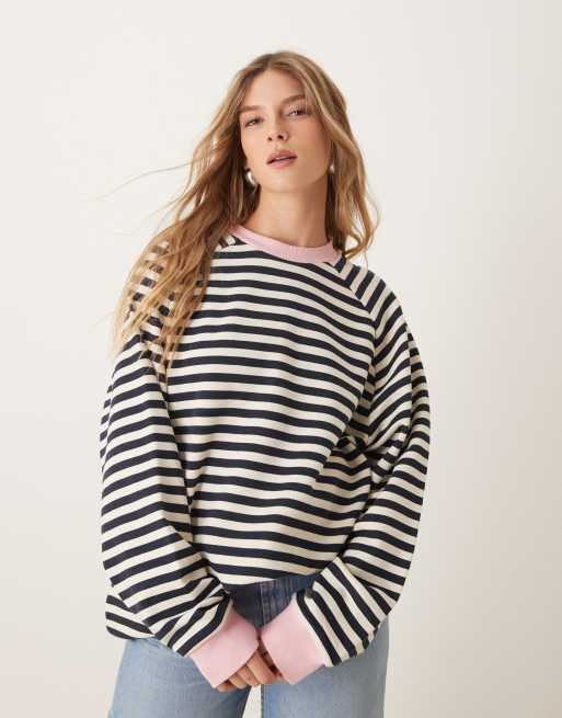 ASOS DESIGN – Langärmliges, geripptes Oversize-Sweatshirt in Rosa