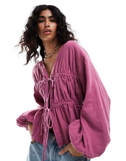 ASOS DESIGN – Langärmliges Hängeroberteil in Orchidee-Pink mit Bindedetails