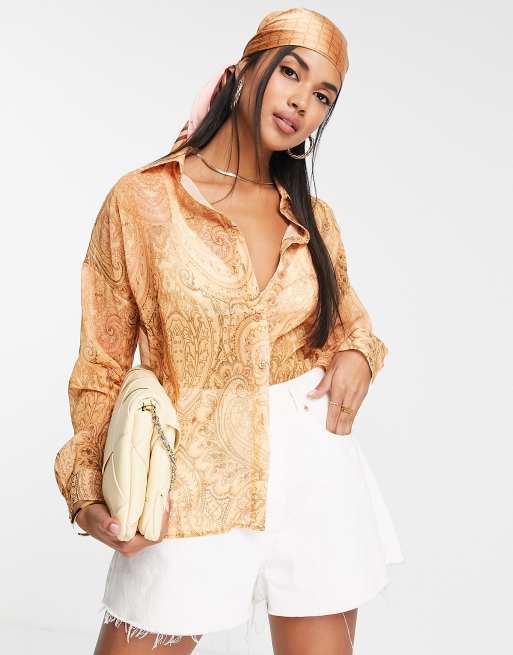 ASOS DESIGN – Langärmliges Hemd in Orange mit Paisley-Muster