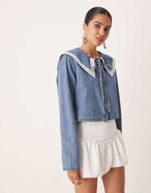 ASOS DESIGN – Langärmliges Jeanshemd in Mittelblau mit Kragen