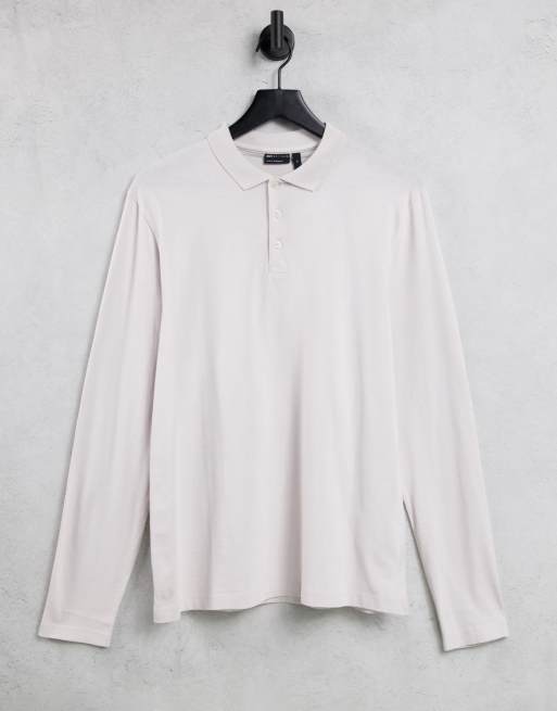 ASOS DESIGN – Langärmliges Jersey-Polohemd in gebrochenem Weiß - CREAM