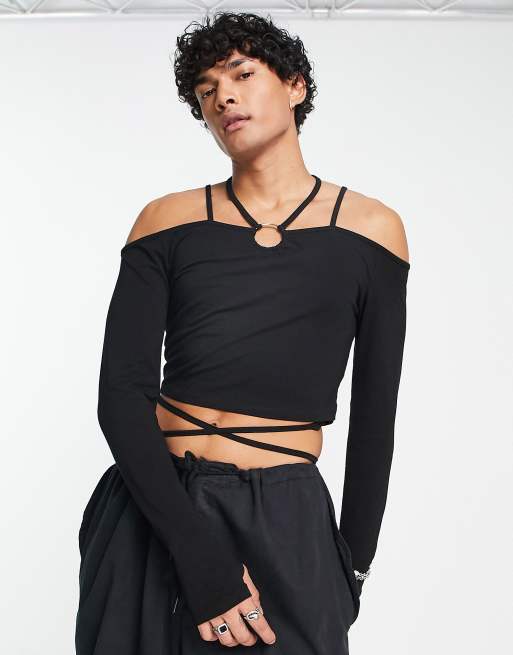 ASOS DESIGN – Langärmliges Muskel-Shirt in Schwarz mit Wickeldetails